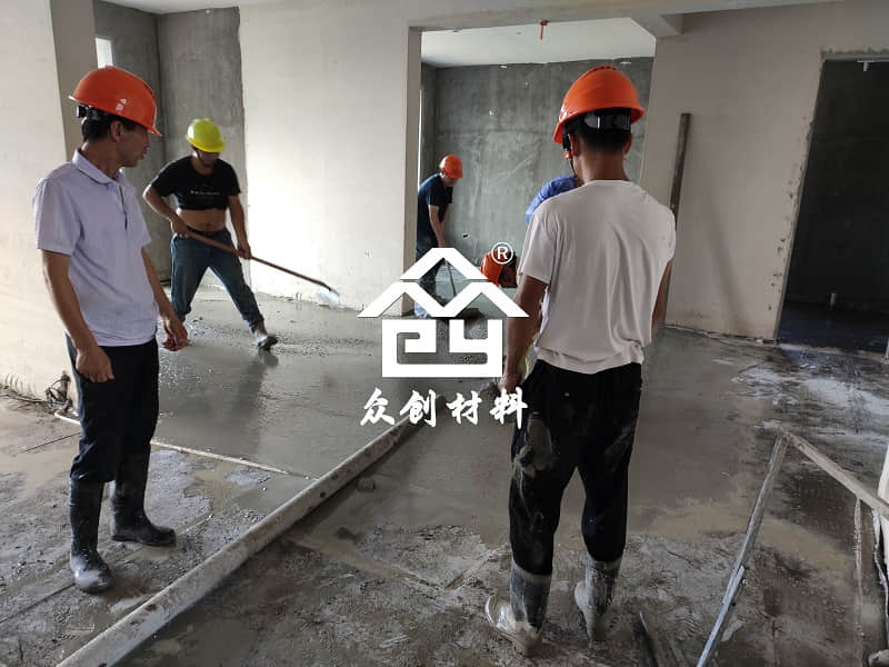 眾創材料入駐慈溪江濱之城厚水泥基自流平施工現場報道